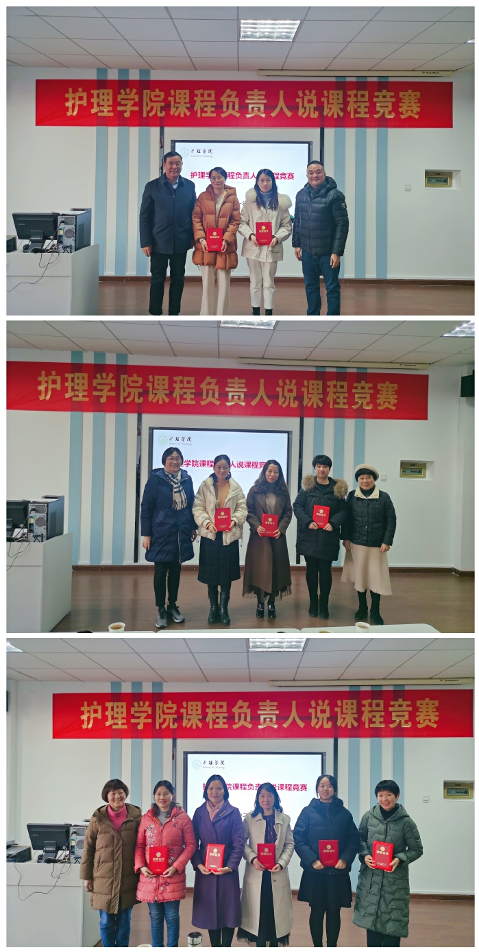 本次竞赛共有10门核心课程负责人参加。10位课程负责人从课程设置、课程改革、课程建设规划和创新举措等方面,以PPT形式进行了精彩汇报。赛后,评委们作了精彩点评,对比赛形式和效果给予充分肯定,对课程思政、课程建设前景、课程建设目标等提出了建设性的意见。经过激烈角逐,《精神科护理学》《护理研究》课程获一等奖,《内科护理学》《护士人文修养》《护理教育学》课程获二等奖,《康复护理学》《护理管理学》《儿科护理学》《眼耳鼻喉口腔科护理学》《护理实验学》课程获三等奖。