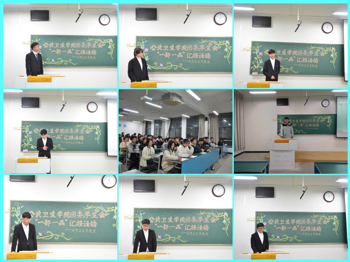 为全面贯彻落实团的十八大和全国学联二十七大精神,推动公共卫生学院团委、学生会改革创新,聚焦育人成效,及时总结凝练、取长补短,加强学院团学组织内部凝聚力,紧紧围绕中心、自觉服务大局,12月11日,公共卫生学院团委、学生会在3201教室举办2021年“一部一品”特色工作汇报活动。