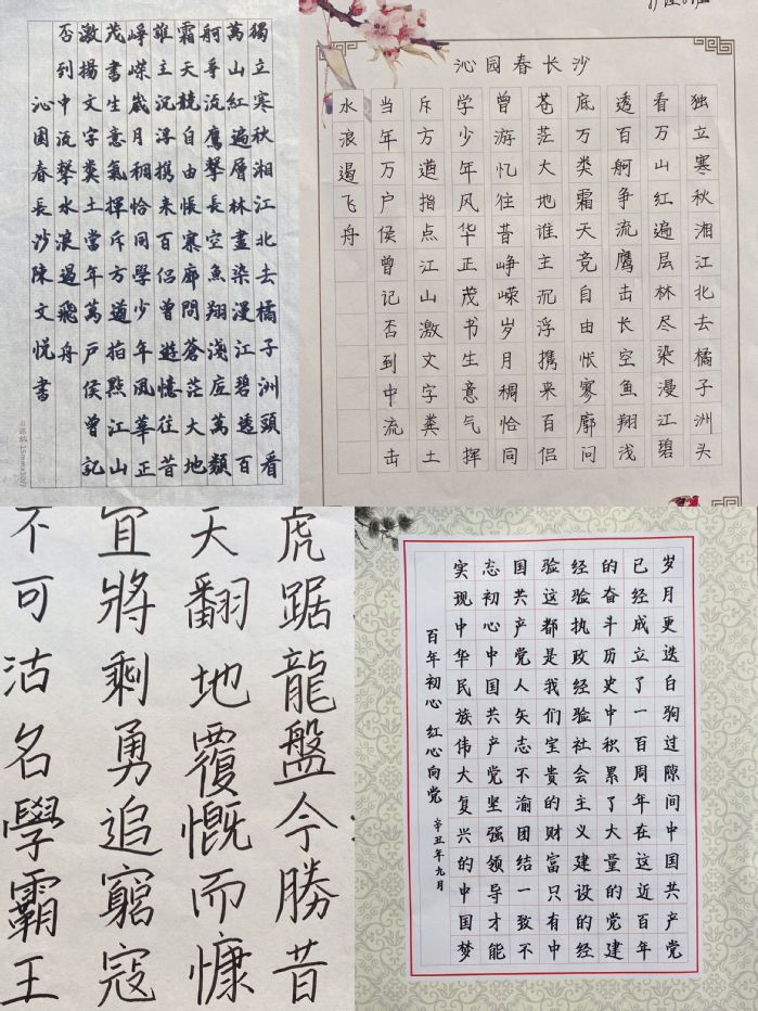 画纸赞颂百年,笔墨讴歌盛世。2021年11月10日,“携翰墨丹青,庆百年华诞”书画手抄报比赛举行,参赛作品有硬笔书法、软笔书法、绘画以及手抄报等,彰显了中华文化魅力和学子精彩创意。经过评委组评选,最终评选出一等奖2名、二等奖3名、三等奖5名。