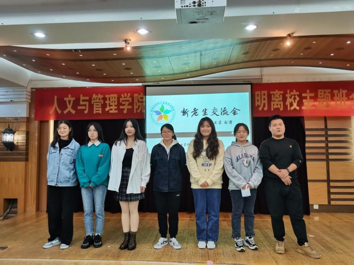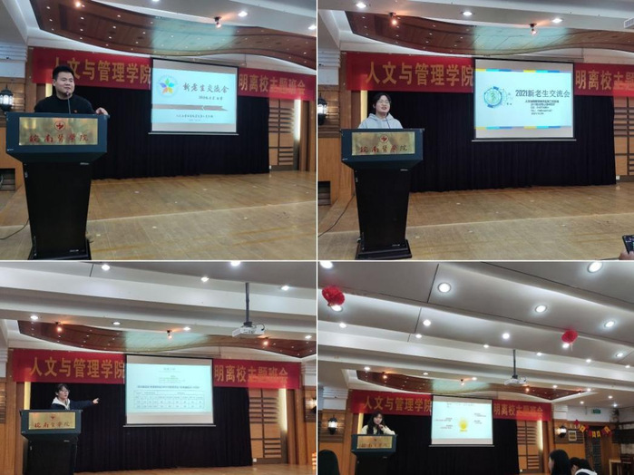 百尺竿头需进步,十方世界是全身。求学之路漫漫,为让2021级新生有章可循、有路可寻,助力更多人管学子扬帆逐梦、不负韶华,秉持“我为师生办实事”理念,人文与管理学院团委携手学生第一党支部、第二党支部于10月29日晚七点在赭麓校区四号教学楼七楼报告厅举办“朋辈携行”新老生交流会,全体2021级新生参加。