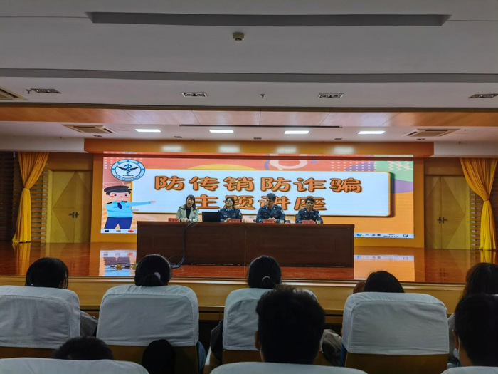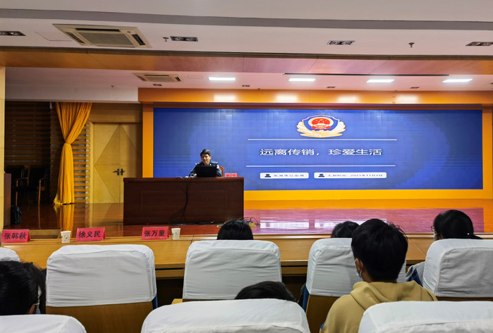 为提高大学生对传销、电信网络诈骗的识别能力和防范意识,11月2日晚,临床医学院邀请芜湖市公安局刑警支队警官张韩秋、徐义民、张万里在图书馆三楼报告厅做“防传销、防诈骗”专题讲座。讲座由临床医学院党委副书记陶香香主持,相关年级辅导员、2020级和2021级学生代表现场聆听。