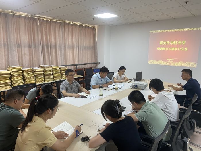 为进一步加强师德师风建设,落实立德树人根本任务,积极引导广大教师做有理想信念、党和人民满意的好老师,9月22日下午,研究生学院全体教职工于学院会议室召开师德师风专题学习会议,会议由学院党委副书记、副院长戴照福主持。