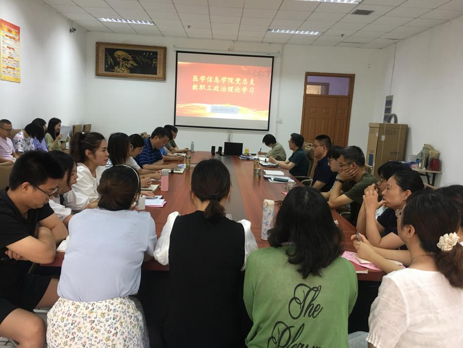 为持续推进党史学习教育走深走实,7月13日上午,医学信息学院党总支在学院会议室召开第13次中心组(扩大)学习暨7月份教职工政治理论学习会。会议由医学信息学院党总支副书记、副院长叶明全主持,学院全体教职工参加学习。