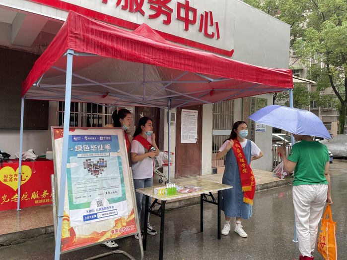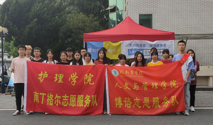 闲置衣物,用之无感,弃之可惜。如果把它们送给有需要的人,则是传递爱心、温暖他人的大爱之举。为帮助困难群众,让闲置衣物“变废为宝”,继续发挥价值,2021年6月19日,人文与管理学院博谘实践队携手护理学院南丁格尔志愿服务队—爱心萌芽小队,共同举办了为期两天的“绿色毕业季”旧衣回收活动。志愿者们分别在赭麓校区食堂门口、黄果山社区、教职工宿舍三处组织旧衣爱心回收活动,鼓励大家行动起来,为更多需要帮助的人送去温暖。