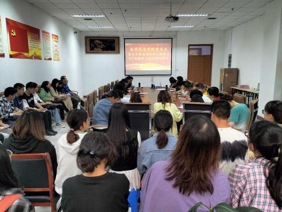5月19日下午,医学信息学院党总支在学院会议室召开2021年第九次中心组学习暨5月份教职工政治理论学习会。会议由学院党总支副书记刘影主持,副院长叶明全、党总支委员、全体党员和教职工参加。
