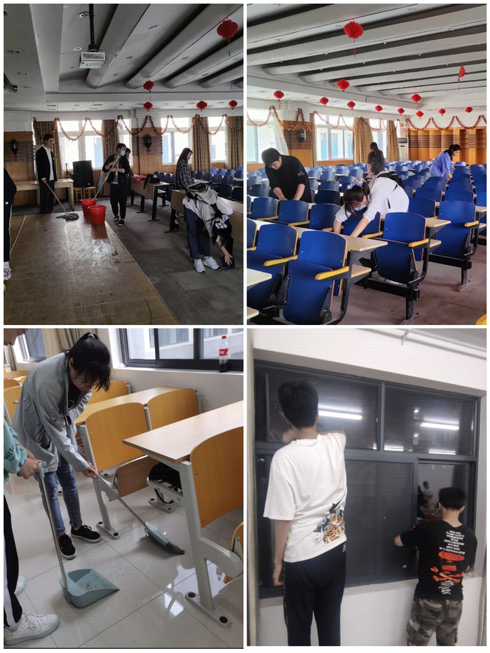 组织开展一次劳动实践集体活动。5月10日中午,人文与管理学院学生在团委学生会的带领下集体清扫和整理四号教学楼七楼报告厅。5月10日至12日,全体2020级学生对赭麓校区四合院自习室进行大扫除,对本自习室门窗、地面、桌椅、黑板等区域进行清洁和整理。在劳动中,学生们热情高涨、踏实认真,在美化校园环境的同时,体会到了劳动带来的乐趣,也切身体会到校园保洁工人的辛苦,纷纷表示要珍惜他人的劳动成果,为创建文明校园贡献自己的一份力量。