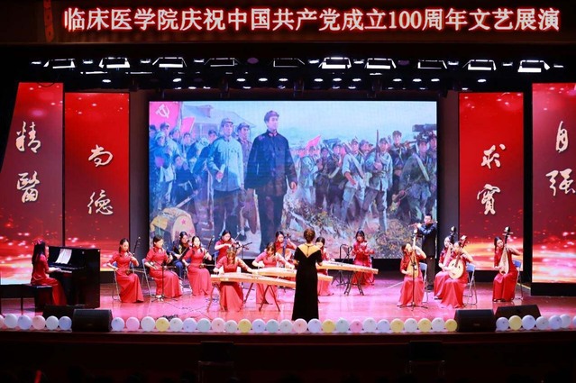 为庆祝中国共产党成立100周年,重温党的光辉历程,创新党建工作方式,传承红色基因,激发广大青年学生活力,5月10日晚,临床医学院在大学生活动中心礼堂举行庆祝中国共产党成立100周年文艺展演,临床医学院师生齐聚一堂,在文艺党课中感受中国共产党筚路蓝缕的百年奋斗历程。