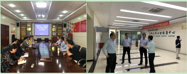 上午,胡鸿一行四人来到马鞍山四院进行考察交流,受到了医院院长王雪倩的热烈欢迎,并在副院长陶德刚、姚献虎的陪同下,参观了医院的心理诊疗科室、精神科及康复中心等部门。双方在会议室简要介绍了各自的学科建设、发展规划后,胡鸿介绍了心理学专业实习的软硬件设施要求,王国平介绍了专业实习的规范与相应流程。然后双方就实习带教的师资队伍建设、实习科室轮转安排与实习生管理、实习期间后勤保障等方面进行了详细讨论,并达成一致意见。期间,马鞍山卫健委副主任兼医院党委书记方金勇与胡鸿一行进行了交流。