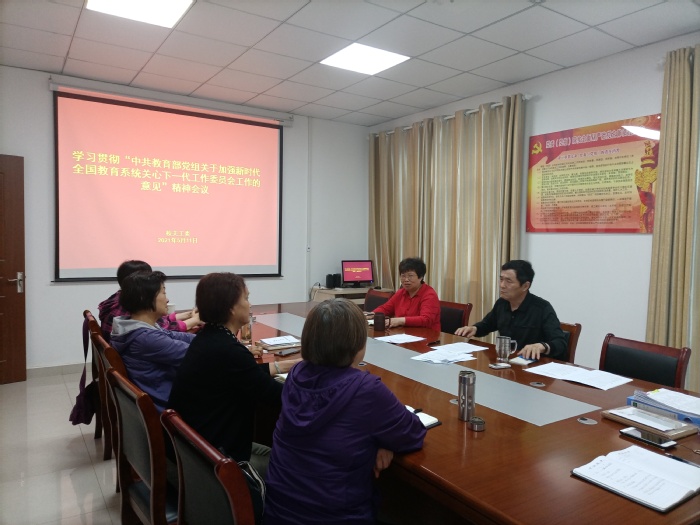 5月11日,校关工委召开专题会议学习贯彻《中共教育部党组关于加强新时代全国教育系统关心下一代工作委员会工作的意见》(教党〔2021〕34 号)(以下简称《意见》)精神。校关工委常务副主任周强,副主任王雪琴,秘书长朱丹,委员杨新庆、胡荣华、郑嘤嘤, 办公室秘书朱晓莲等参加会议。会议由周强主持。