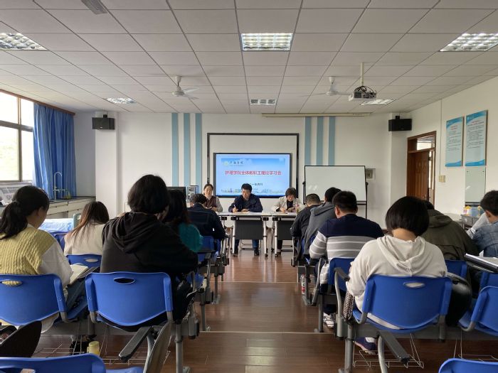 2021年4月28日下午,护理学院在3号实验楼示教室召开全体教职工理论学习会。会议由学院党委副书记吴梅主持。