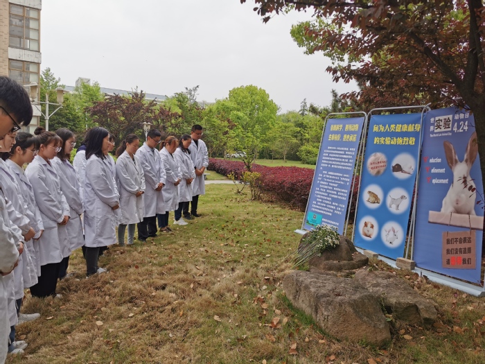 为拓展课程育人渠道,病理生理学党支部结合支部工作,坚持立德树人根本任务,积极开展主题党日活动。在近期开展的支部“感恩实验动物”主题党日活动中,为感恩实验动物为人类健康事业做出的巨大贡献和牺牲,病理生理学党支部邀请不同专业的学生预备党员、发展对象、积极分子及学生会干部代表,让他们走出课堂走进党支部。主题党日活动中,支部党员教师刘鑫作题为“向为科学献身的生命致敬”的报告,讲述了“感恩实验动物”主题党日活动,介绍了世界实验动物日的由来、实验动物的贡献、实验动物使用的“3R原则”等。报告结束后,支部党员和学生代表到1号实验楼下为实验动物献花、集体默哀1分钟,表达对动物的尊敬、感恩之心以及对生命的敬畏。此外,为扩大支部活动的影响和受益面,党支部开还开展了线上留言及献花祭奠活动,近千名师生参与网上献花活动。通过主题党日活动开展,教育引导学生珍惜每一次实验机会,善待每一只实验动物,让它们的牺牲更有价值,更让学生感知对生命的敬畏。