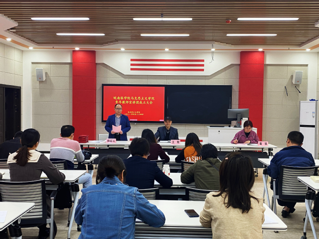 为庆祝中国共产党成立100周年,深入学习贯彻习近平新时代中国特色社会主义思想,推动党史学习教育工作扎实开展,广泛营造“学党史、悟思想、办实事、开新局”的浓厚氛围,4月24日下午,马克思主义学院在虚拟仿真中心召开青年教师宣讲团成立大会。学院院长王军、副院长陶庭马及宣讲团全体成员参加会议,宣讲团指导教师黄英主持会议。