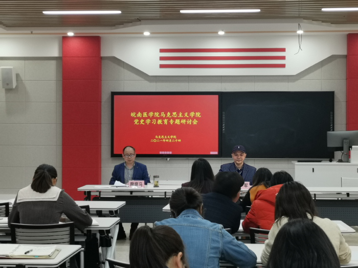 会议围绕“立足岗位,推动党史学习教育三进”开展专题研讨。党支部副书记、学院副院长陶庭马首先传达了芜湖市党史学习教育市委宣讲团宣讲动员会精神,并分享了宣讲经验,指出宣讲形式应活泼多样,内容精准到位,重点讲清党史学习教育的重大意义、党的百年光辉历程和历史性贡献,充分发挥其思想引领作用。