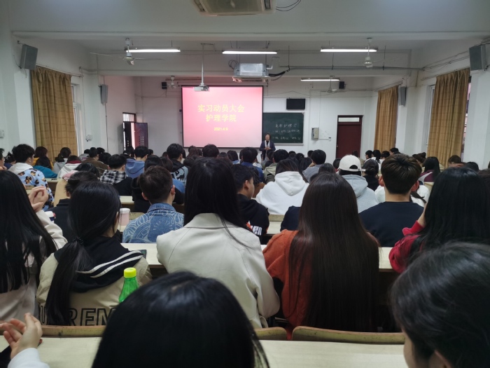 精心组织,动员教育。4月9日晚上7时,学院在赭麓校区1号教学楼召开实习动员大会,学院院长李远珍、2018级辅导员和全体同学参加会议。会上,李远珍强调了实践教学的重要性,围绕职业防护、安全教育、工作纪律等方面对同学们提出了具体要求,勉励大家珍惜学习机会,端正学习态度,遵守规章制度,在实习岗位上砥砺素质、提升能力,为学院和学校争光添彩。