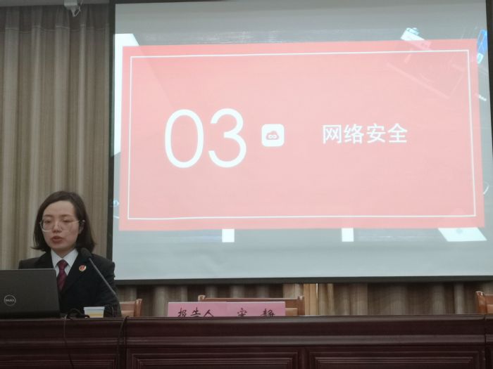 讲座中,宋静围绕习近平总书记总体国家安全观提出的背景,以“维护国家安全,人人都是主角”为主题,细致讲解了“什么是国家安全”、“什么是网络安全”、“我们应该做什么”,并结合近年来的典型案例,提醒同学们要做到居安思危、知危图安。