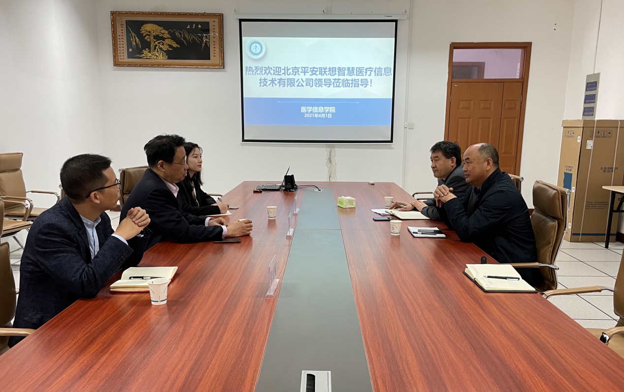 4月1日上午,北京平安联想智慧医疗信息技术有限公司副总裁冀晓东等一行3人来医学信息学院洽谈合作事宜,学院党总支书记陈晓宏、副院长叶明全接待了冀晓东一行并展开座谈交流。