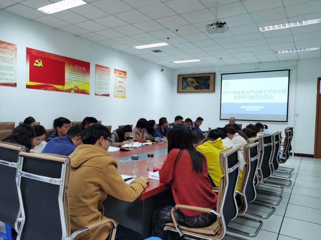 回顾建党峥嵘党史,喜迎建党百年华诞。2021年3月31日下午,医学信息学院于学院会议室召开2021年全面从严治党工作会议暨党史学习教育动员会。会议由学院党总支书记陈晓宏主持,学院全体党员参加。