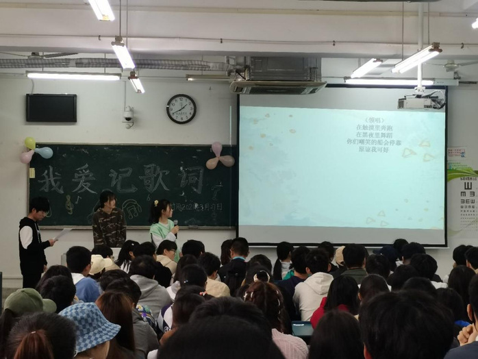 为营造充满活力和健康向上的校园气氛,突出文化内涵和学院特色理念,全面发展大学生素质教育,尊重学生的主体性和主动精神,充分展现新一代大学生良好的青春风采,医学影像学院于3月27日在1102教室成功举办了“我爱记歌词”活动,将通识教育选修课与学院活动相结合,全面提升学生们的文化素质和文化品位。