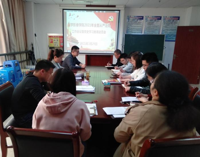 3月29日,医学影像学院党委在学院会议室召开全面从严治党工作会议暨党史学习教育动员会,学院党委委员、支部书记、校本部教研室主任、副主任和各年级辅导员参加了会议。会议由学院党委书记、副院长张建英主持。