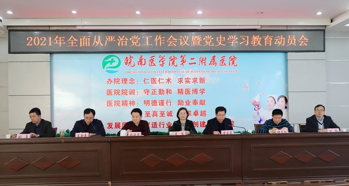 3月26日,二附院召开2021年全面从严治党工作会议暨党史学习教育动员会,医院领导、党委委员、纪委委员、党支部书记、职能科室负责人、临床医技科室主要负责人和护士长、党风党纪监督员、特邀监察员、各党支部纪检委员等参加会议,会议由二附院党委副书记、院长黄后宝主持。