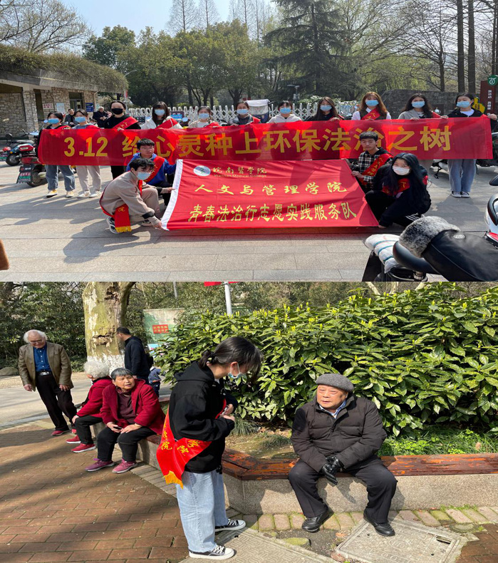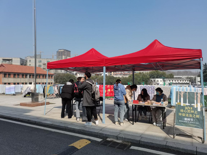 此外,两个实践队还在赭麓校区四合院同步开展有关“3.12给心灵种上环保法治之树”的宣传活动,学生党员积极发挥先锋模范作用,为活动提供帮助。