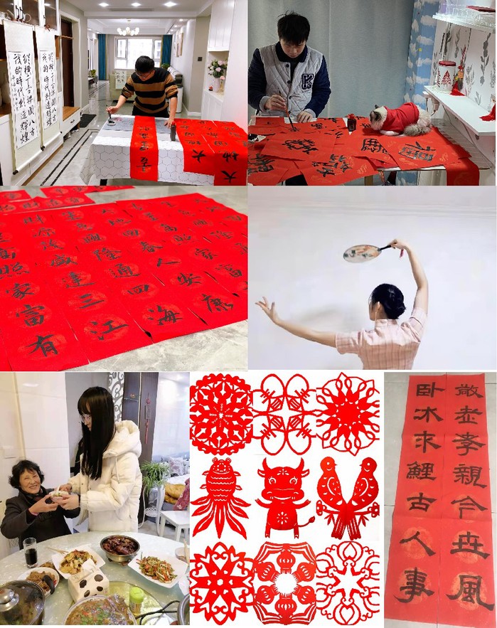 新春佳节之际,同学们或写对联赠亲朋好友,或向长辈盛汤倒酒以示敬意、或剪窗花传承传统技艺……,在感受浓浓亲情的同时不忘继承和弘扬优秀传统文化,既生动有趣、情真意切地展示了自家的“年味”和家风,又积极落实了“宅家”过年的疫情防控要求。