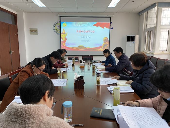 2021年2月27日下午,护理学院党委在学院会议室召开中心组学习扩大会,学院党政领导、党委委员、党支部书记参会。会议由学院党委书记陈抗震主持。
