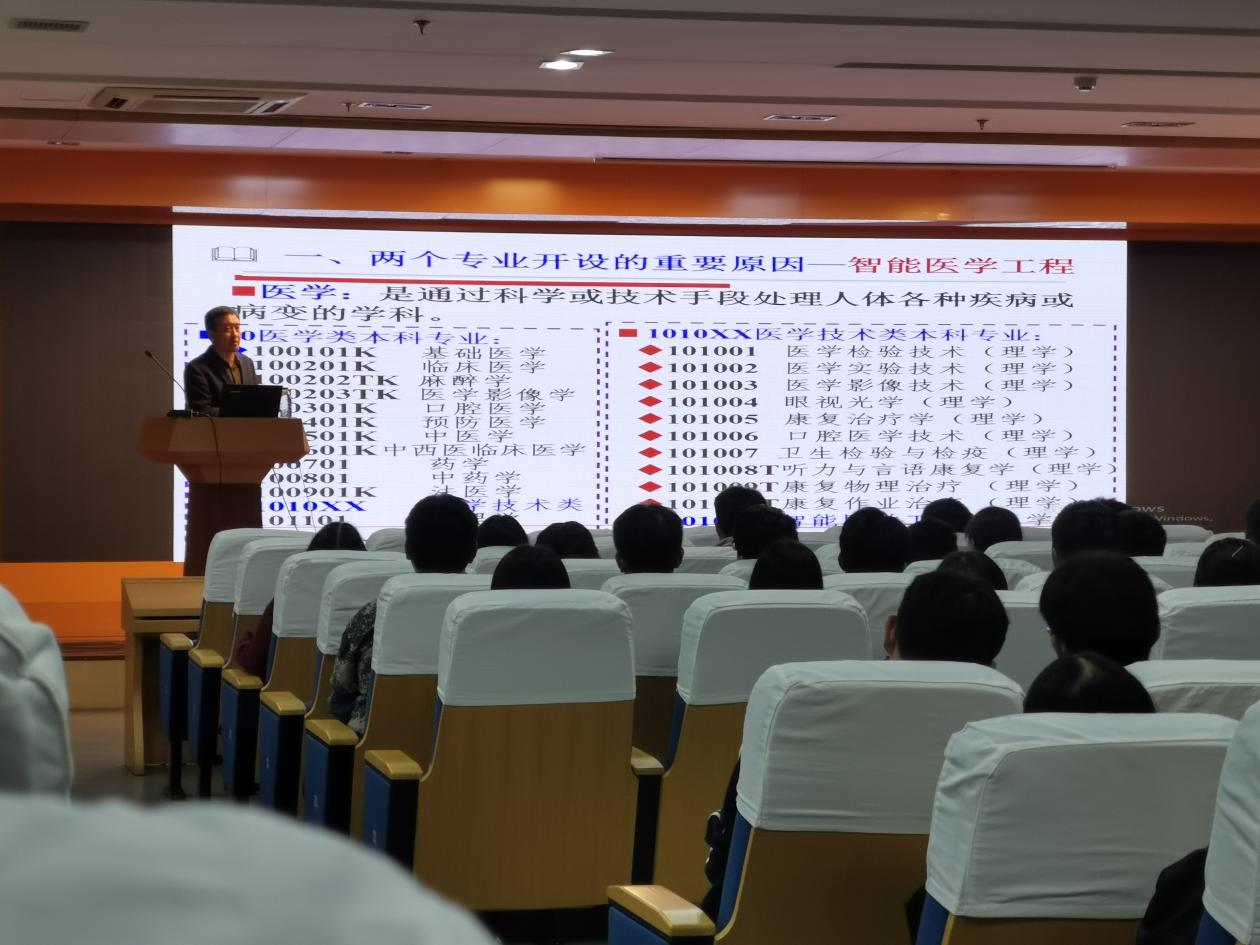 在新生专业思想教育交流会上,叶明全结合人工智能和大数据等新一代信息技术支撑服务病毒检测诊断、影像辅助诊疗、疫苗新药研发、病毒溯源防控、疫情态势研判和传播路径分析等,以“互联网+医疗健康”和“人工智能+医疗健康”国家创新发展战略以及新工科新医科建设的巨大前景为出发点,阐释了医学信息工程、智能医学工程两个专业开设的理由基础和学科支撑;介绍了医学信息学院的三年成长历程、学科专业发展、人才培养特色以及升学就业前景等。他希望全体新生能够秉承“精医、尚德、求实、自强”的校训,发扬“艰苦创业、求实自强、奉献社会”的皖医精神,注重人文素养、专业知识和职业技能并重,明确人生奋斗目标和职业发展方向,积极参加学科竞赛、社会调查和创新创业训练等实践活动,提高自身综合素质和升学就业竞争力。
