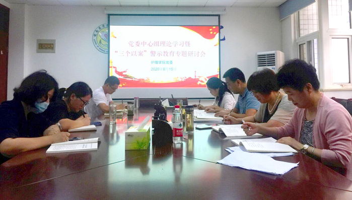 2020年6月15日下午,护理学院党委在学院四楼会议室开展党委中心组理论学习暨“三个以案”警示教育专题学习研讨会。学院党政领导、党委委员参加会议,会议由学院党委书记陈抗震主持。