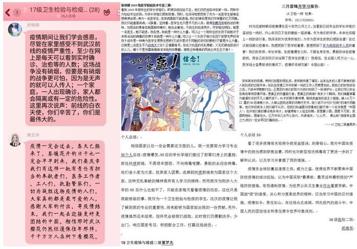 尽管这次学习活动是在网上展开,但同学们的热情依旧不减。在这个特殊的三月,作为医学生的同学们更加明白了肩上的使命和担当,也坚信在无数抗击疫情医务工作者的努力下,必将“疫”去花开,春风徐来。