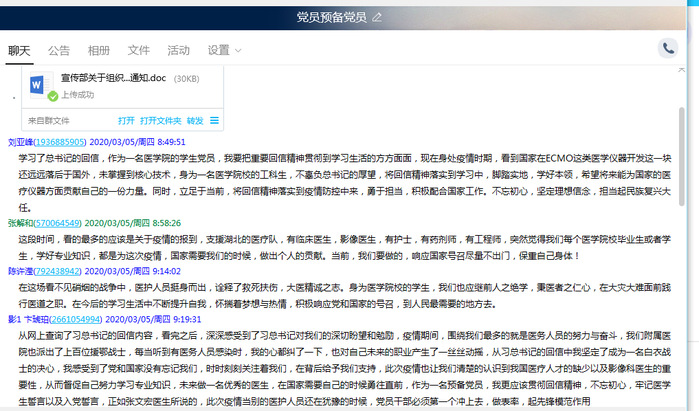 学院还要求全体党员向党组织递交一份抗击疫情期间的思想汇报,让所有党员将这期间的体会和感悟向党组织书面汇报。