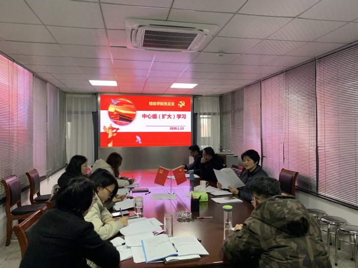 2020年1月13日,检验学院党总支举行中心组(扩大)学习会,学习习近平总书记在“不忘初心、牢记使命”主题教育总结大会上的重要讲话精神。学院党总支委员、全体教师党员参加会议,会议由党总支副书记崔晓霞主持。