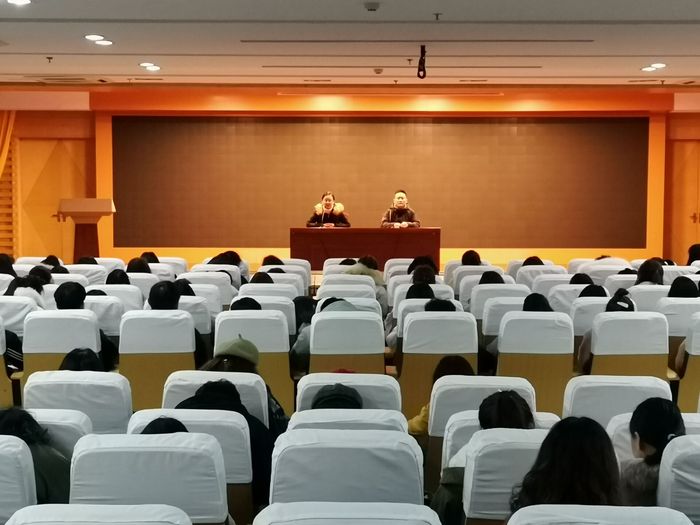 王爱侠首先介绍了近年来全国高校毕业生就业形势、我校毕业生就业总体情况以及护理学院毕业生就业情况分析,重点解读了基层就业项目,国家、省、市相关毕业生就业政策以及自主创业和家庭经济困难毕业生就业帮扶等政策。上一届毕业班辅导员王结义、叶大鹏两位老师,针对毕业生就业工作中需要把握的有关事项作了详细说明。2019届毕业生代表吴彤结合就业准备、招聘考试等作了经验介绍。吴梅从树立正确就业观念、合理定位、就业安全等方面对毕业生就业工作强调了有关要求。