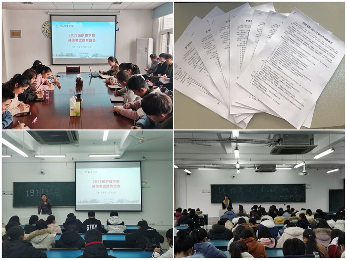为强化大学生诚信意识,培养大学生诚信品质,12月中上旬,各年级组织开展了诚信考试系列主题班会,并签订了诚信考试承诺书,帮助同学们认识诚信考试的内涵,端正考试态度,强化诚信意识。