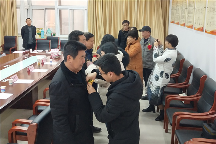 会议最后,参会的五位2019年新进教职工分别为五位荣休的教职工佩戴了胸花,年轻老师深情表达了对老前辈的崇敬之情,老教师们对青年教师的殷切关爱之情也溢于言表。会议在欢乐祥和的气氛中结束。