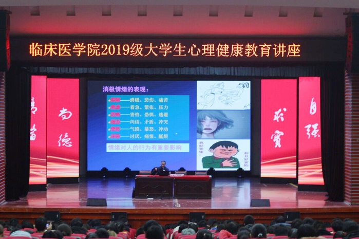 为进一步提高大学生的心理素质,促进大学生身心健康,12月17日下午4点,临床医学院邀请了校五老报告团刘新民教授为2019级新生作“情绪的调控和情商的培养”主题讲座。讲座由辅导员陶绍晨主持,2019级全体学生参加讲座。