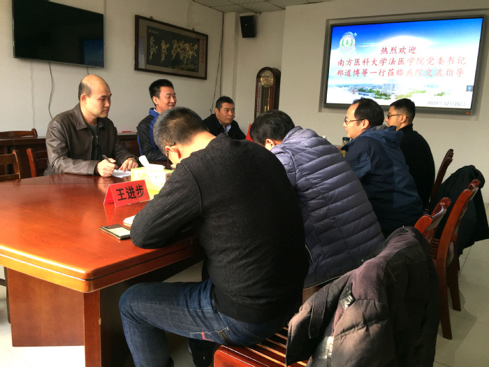 2019年12月16日上午,南方医科大学法医学院党委书记郑道博、副院长邱平明及王起副教授一行三人来我校法医学院,就学科建设及司法鉴定中心管理等事项进行调研与交流。