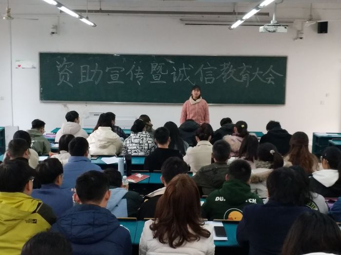 为加大国家资助政策的宣传力度,提高广大同学们的感恩意识和责任意识,临床医学院2017级于2019年12月3日在2104教室开展资助政策宣讲活动,宣讲会由2017级辅导员汪国瑞主持,主讲人为连续两年获得国家励志奖学金的2017级陈晨晨同学。
