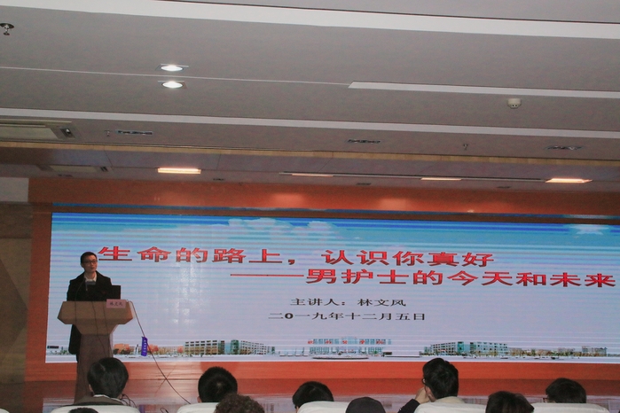 发扬南丁格尔精神,争当生命守护卫士。为加深男护生对护理职业的认识和了解,树立明确的职业发展目标,2019年12月6日晚,护理学院在图书信息大楼学术报告厅举办男护生专业思想和职业生涯规划教育专题讲座。安徽省立医院林文风护士长受邀主讲,相关年级辅导员和300余名男护生聆听讲座。