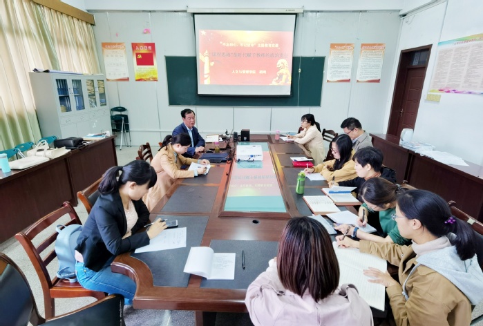 11月12日中午,人文与管理学院院长胡鸿为心理学党支部作“不忘初心、牢记使命”主题教育专题党课《“课程思政”是时代赋予教师的政治责任》,心理学党支部全体党员参会。