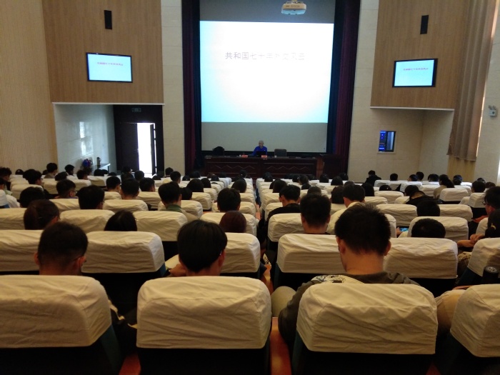 黄远寿教授从“抗美援朝战争”切入,结合“日内瓦会议”、“中苏关系新变化”、“珍宝岛事件” 、“尼克松访华” 、“海湾战争”、“苏联解体”、“中国加入世界贸易组织”等历史事实,准确分析了新中国成立以来中国外交的严峻形势、挑战和变化,提出“弱国无外交、落后就要挨打”的观点,告诫所有同学铭记历史,珍惜现在的学习生活,为祖国事业发展贡献自己的力量。