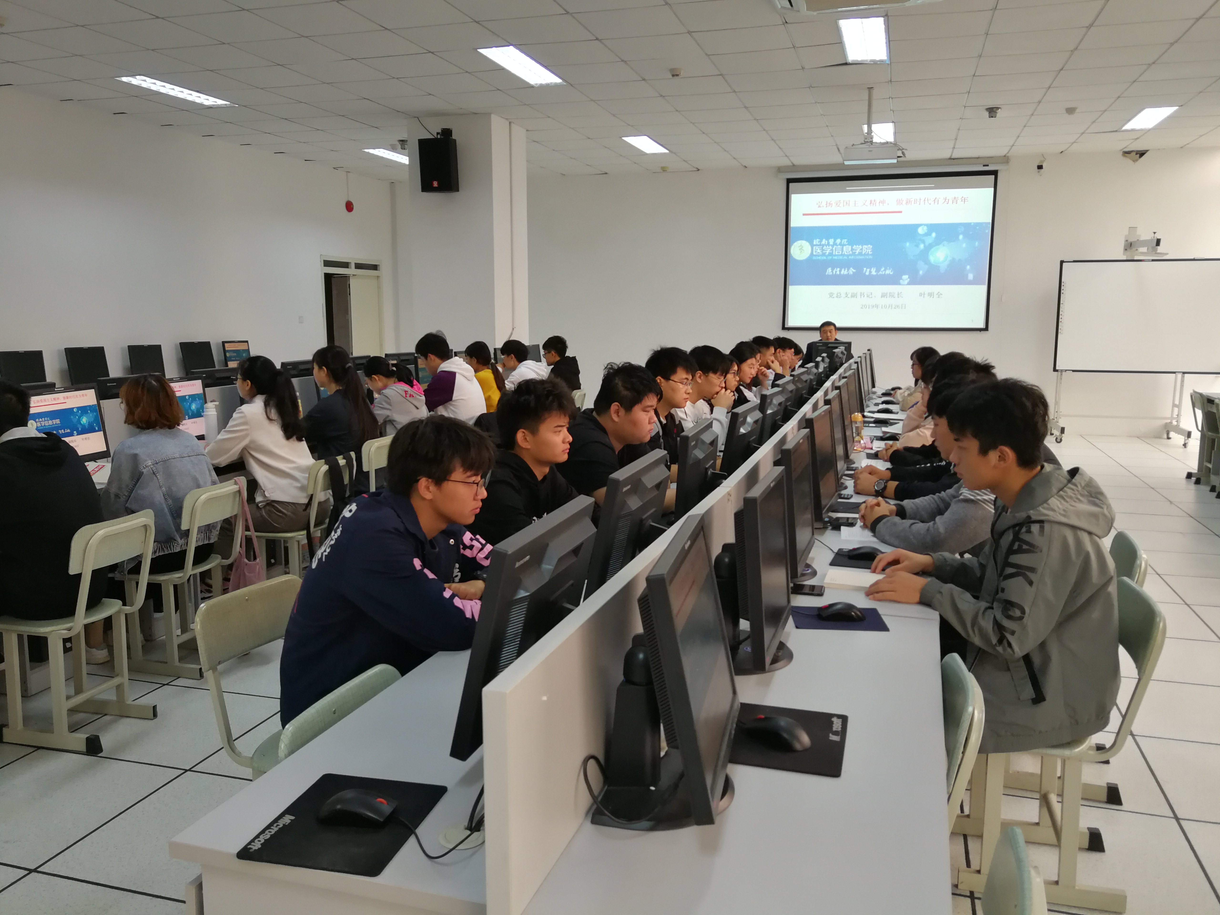 2019年10月26日,医学信息学院在图书信息大楼二楼公共机房举办党校第五十一期入党积极分子培训班开班典礼。医学信息学院党总支副书记、副院长叶明全,党务秘书韩琪和30名入党积极分子参加开班仪式。开班仪式由韩琪主持。