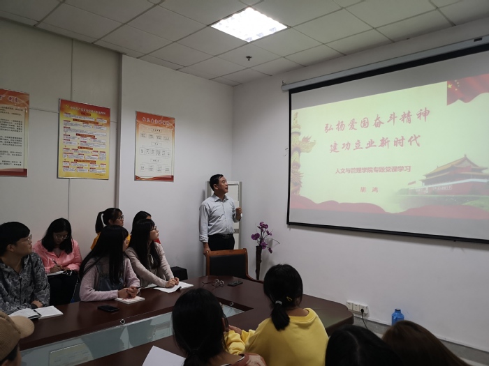 人文与管理学院院长胡鸿为入党积极分子作“弘扬爱国主义精神,建功立业新时代”专题教育。他表示,青年人要牢记自己的使命,首先要爱国、有担当,充分发挥自己的作用,投身社会主义建设中实现自己的人生价值。他通过邓稼先、钱学森、郭永怀等榜样人物事迹激励着在场的同学,强调青年人要以一颗纯洁之心,以钢铁般的意志奋力走好新时代的长征路;要做一个不畏不馁的长跑者,锻造“撸起袖子加油干”的务实精神。