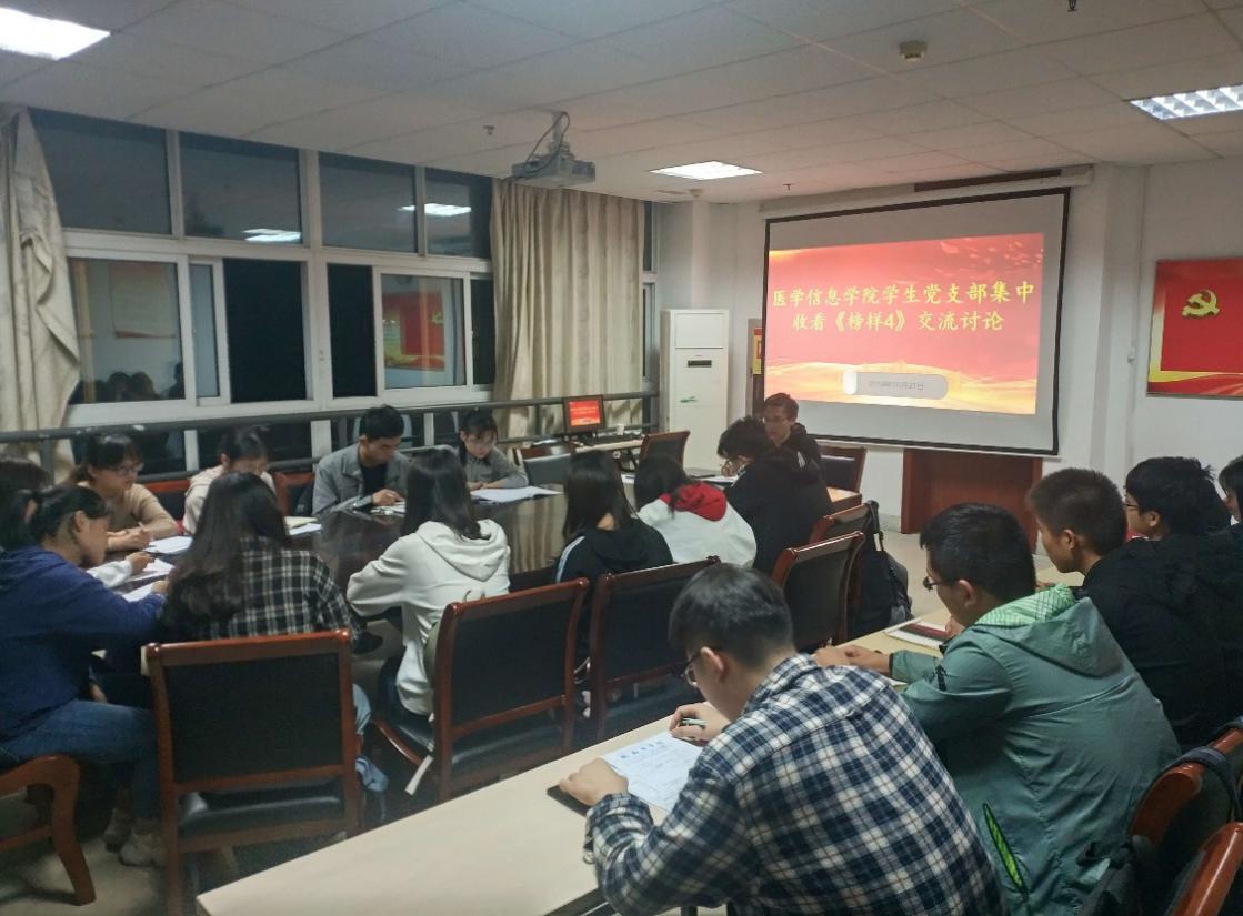 10月21日,医学信息学院为了解党员榜样事迹,学习榜样精神,以多种形式组织我院党员观看由中共中央组织部和中央广播电视总台联合录制的反映优秀共产党员和先进基层党组织典型事迹的专题节目《榜样4》。本次观看活动以集中观看、分散收看和座谈交流等形式开展。