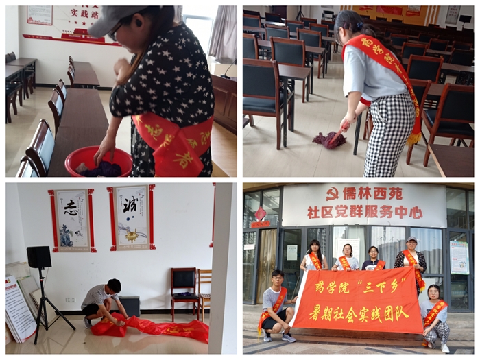 清洁社区街道,美化城市环境。为助力芜湖市社区建设,促进文明社会建设,我院志愿者组成清洁队伍,前往儒林西苑社区,助力社区清洁工作。药学院学子以实际行动将不怕苦不怕累的精神融入志愿服务中。清洁地板,打扫街道,为社区清洁工作尽自己的一份力量。整理物资,摆放桌椅,帮助社区工作人员分担重工作。志愿者们的辛勤劳动获得了社区工作人员的一致好评。