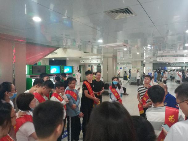 在为期一个多月的实践中,团队成员每天服务时间高达十小时,面对上千的人流量,且中途无法坐着休息,工作强度很大,但志愿者们坚持早上六点准时到达医院,迅速适应岗位工作,克服炎热高温环境,努力摆正服务心态,以最好的状态为每一位患者和医护人员提供力所能及的服务,帮助医护人员更快适应系统,提高就诊效率。