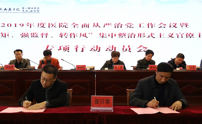 2019年初,一附院召开2019年度全面从严治党工作会议,院领导与临床、医技科室和护理单元分别签订全面从严治党和行风建设责任书,进一步明确了党风廉政建设的主体责任,增强了医护员工的政治意识、责任意识和纪律意识。