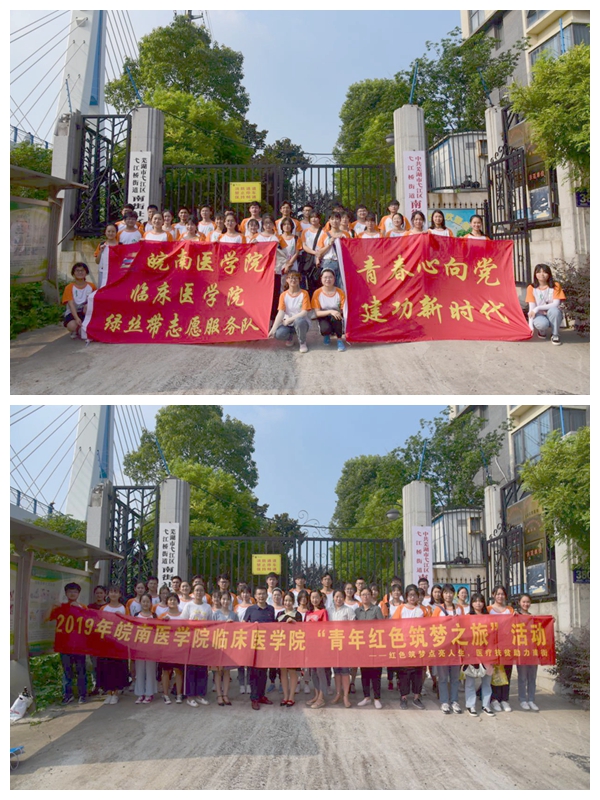 为深入学习习近平新时代中国特色社会主义思想和党的十九大、十九届二中、三中全会精神,贯彻落实习近平总书记给“互联网+”大学生创新创业大赛“青年红色筑梦之旅”重要回信精神,引导更多青年学生了解中国新时代国情,在创新创业中增长智慧才干,在艰苦奋斗中锤炼意识品质,助力大学生暑期“三下乡”社会实践活动,6月29日,临床医学院教工党支部、学院团委、绿丝带志愿服务队组成的志愿者团队在学院党委副书记陶香香的带领下,赴芜湖市南街开展“青年红色筑梦之旅”暨暑期“三下乡”社会实践活动。