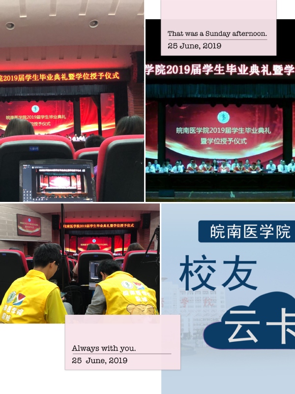 与此同时,毕业典礼当日还进行了“校园云卡”的发放和“毕业微语”的线下活动部分。为加强与校友们的联系,校友办为各位毕业生发放校园卡的线上虚拟卡“校友云卡”。作为皖医校友身份的证明,校友们可凭此“校园云卡”获得学校的部分资源使用权限。对于母校这份贴心的礼物,毕业生们纷纷用笔在“毕业微语”的留言板上写下了自己对母校的感激与不舍,体现了皖医学子们临别之际,不忘母校情深的真挚情怀。