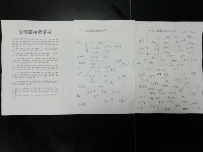 检验学院通过学院网站、宣传板、QQ、微信等多种形式,向毕业生发出文明离校倡议,倡议大家遵守校规,倡导文明;铭记师恩,珍视友情;做一件好事,献一片真情;以健康文明的方式离开母校,并自愿签订《文明离校承诺书》。